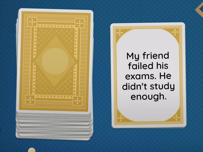 Tom didn't catch the train. He was late., I went to bed late. I was tired at school., The dress was expensive. I didn't buy it., I ate too much. I felt sick., I spent all the money on clothes. I was broke., I took medicine. I felt better., I didn't save money. I wasn't able to buy a tablet., I wasn't hungry. I didn't eat lunch., You didn't look at the departure board. You didn't know where to go., I didn't have time. I didn't go to John's party., I studied a lot. I passed all my exams., My friend failed his exams. He didn't study enough., The car crashed because you drove too fast., We got lost because we forgot the satnav., The weather wasn't nice. We stayed at home..