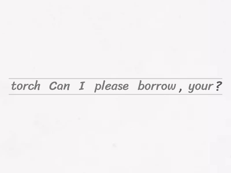 Can I borrow your torch, please?, Can you lend me some money, please?, Could you give me the key to my room?, Can I have the tablet?, Yes, no problem., Sorry, I can't. I'm using it right now., Can I have the camera, Dad?, Sorry you can't. I'm taking some photos now. , Could you bring me some water?,
