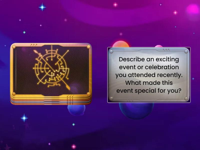 Describe an exciting event or celebration you attended recently. What made this event special for you?, Discuss a time when you had difficulty following directions in a new place. How did you solve this problem?, Talk about a significant relationship in your life (friendship, family, or romantic). How has this relationship influenced you?, Describe a moment when you realized an important life lesson. What impact did this realization have on you?, What are your career aspirations? How did you decide on this career path?, How do you recognize opportunities in your life? Can you tell about a time you took advantage of an opportunity?.