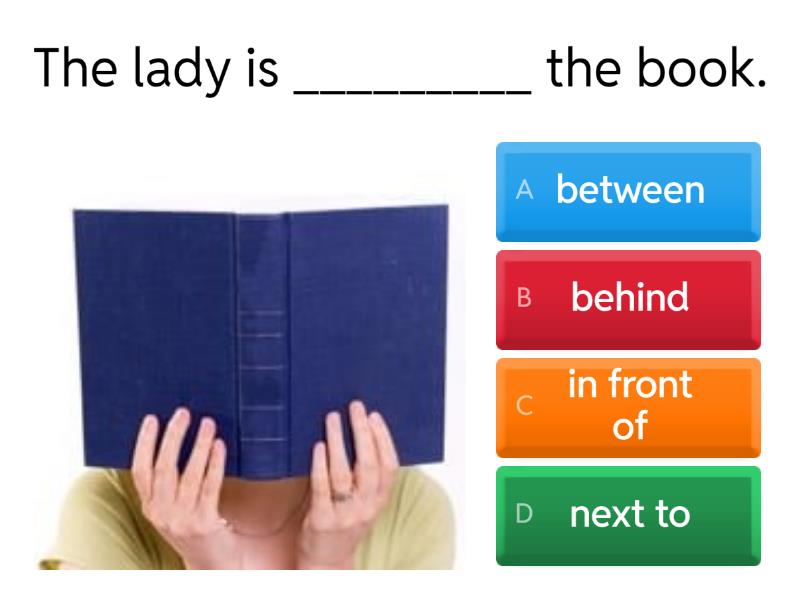 1) The lady is _________ the book. a) between b) behind c) in front of d) next to 2) The cat is ________ the dog. a) between b) behind c) in front of d) next to 3) The cat is ________ the dogs. a) between  b) behind  c) in front of d) next to 4) The cow is ________the tree. a) between b) in front of c) behind d) next to 5) The dog is _______ the tree. a) between b) behind c) in front of d) next to 6) The dog is _______ the house. a) behind b) in front of c) between d) next to 7) The boy is _______ the chair. a) behind b) between c) in front of d) next to 8) The mouse is ________ the cat. a) between b) behind c) in front of d) next to 9) The lion is _______ the two men. a) in front of b) between c) behind d) next to 10) The spider is ___________ the pots. a) between b) in front of c) behind d) next to 11) The dog is ________________ the gate. a) behind b) in front of c) between d) next to 12) The girl is ________ the boy. a) between b) behind c) in front of d) next to 13) The mouse is ___________ the trees. a) behind b) between c) in front of d) next to 14) The lady is ____________ the door.  a) in front of b) behind c) between d) next to 15) The elephant is _____________ the chair.  a) behind b) between c) in front of d) next to 16) The puppy is _______ the bunnies. a) behind b) between c) in front of d) next to 17) The girl is ________ the couch. a) behind b) in front of c) between d) next to 18) The dog is ________the tree. a) between b) behind c) in front of d) next to 19) The firefighter is _________ the fire station.  a) behind b) between c) in front of d) next to 20) The boy is __________ the door. a) in front of b) behind c) between d) next to