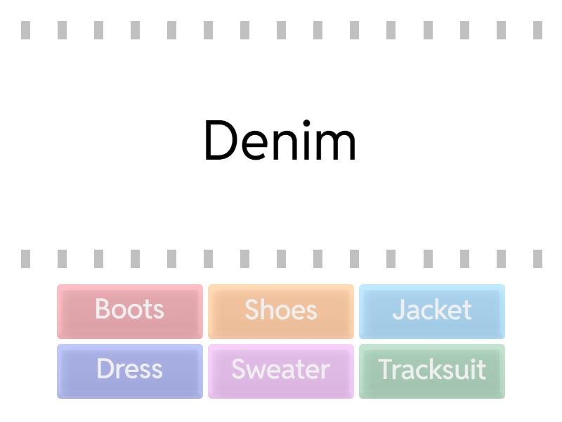 Jacket - Denim, Boots - Leather, Shoes - Suede, Tracksuit - Cotton, Sweater - Wool, Dress - Silk,