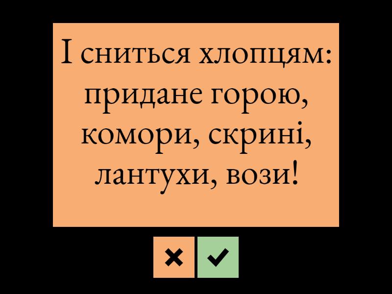Чужа душа — то, кажуть, темний ліс. А я скажу: не кожна, ой не кожна! - Чураїха, Він міряв не тією міркою. В житті шукав дорогу не пряму. - Грицько Бобренко, Він народився під такою зіркою, що щось в душі двоїлося йому. - Грицько Бобренко, Чужа душа — то тихе море сліз. Плювати в неї — гріх тяжкий, не можна. - Чураїха, Від того кидавсь берега до того. Любив достаток і любив пісні. - Грицько Бобренко, Це як, скажімо, вірувати в бога і продавати душу сатані. - про двоїстість душі Грицька, Під Берестечком бився ти сміливо. Під Зборовом також і над Пилявою. - Маруся про Грицька Бобренка, І тільки у домашньому бою сміливість раптом втратив ти свою. - Маруся про Грицька Бобренка, Ця дівчина... Обличчя, як з ікон. І ви її збираєтесь карати?! - Запорожець захищає Марусю на суді, А що, як інший вибрати закон, — не з боку вбивства, а із боку зради? - Запорожець захищає Марусю на суді, Ну, є ж про зраду там які статті? Не всяка ж кара має буть незбожна. - Запорожець захищає Марусю на суді, Що ж це виходить ? Зрадити в житті державу — злочин, а людину — можна?! - Запорожець, Ця дівчина не просто так, Маруся. Це — голос наш. Це — пісня. Це — душа. - Іван Іскра про Марусю, Коли в похід виходила батава, її піснями плакала Полтава. - Іван Іскра про Марусю, Що нам було потрібно на війні? Шаблі, знамена і її пісні. - Іван Іскра про Марусю, Любив же він Марусю, не дай Боже! Тепер сидить, лиця на нім нема. - Іван Іскра на суді, Вона піснями виспівала душу, вона пісні ці залишає нам. - Іван Іскра про Марусю, Як він уміє красно говорить! Які у нього займища і луки! - Вишняк, Вся Україна полум'ям горить, він і на цьому теж нагріє руки. - Вишняк, Такі пухкі у неї рученята, коса білява, куца і товста. - Галя Вишняківна, Як реп'яшки, зелені оченята і пишно закопилені вуста. - Галя Вишняківна, Глуха до пісні, завжди щось спотворить, все вишиває прошви подушок. - Галя Вишняківна, Ще як мовчить -- нічого. Заговорить -- гостренькі зуби -- чисто ховрашок. - Галя Вишняківна, І сниться хлопцям: придане горою, комори, скрині, лантухи, вози! - Галя Вишняківна, А понавколо свахи ходять роєм, а зверху вона котить гарбузи. - Галя Вишняківна, Ще не старий. І славу мав, і силу, про нього потім думу іскладуть. - Мартин Пушкар, Мине сім літ -- і голову цю сиву Виговському на списі подадуть. - Мартин Пушкар, Бенкетував, сідав на шию хлопу, пускав дівчат по світу без коси. - Ярема Вишневецький, Стріляв козуль, возив пшоно в Європу і на поташ випалював ліси. - Ярема Вишневецький, Був молодий і гарний був на вроду. І жив, і вмер, як личить козаку. - Северин Наливайко, За те, що він боровся за свободу, його спалили в мідному бику! - Северин Наливайко, Ми з нею рідні. Ми одного кореня. Мабуть, один лелека нас приніс. - Іван Іскра про Марусю, Батьки у нас безстрашні й невпокорені, а матері посивілі від сліз. - Іван Іскра про Марусю,