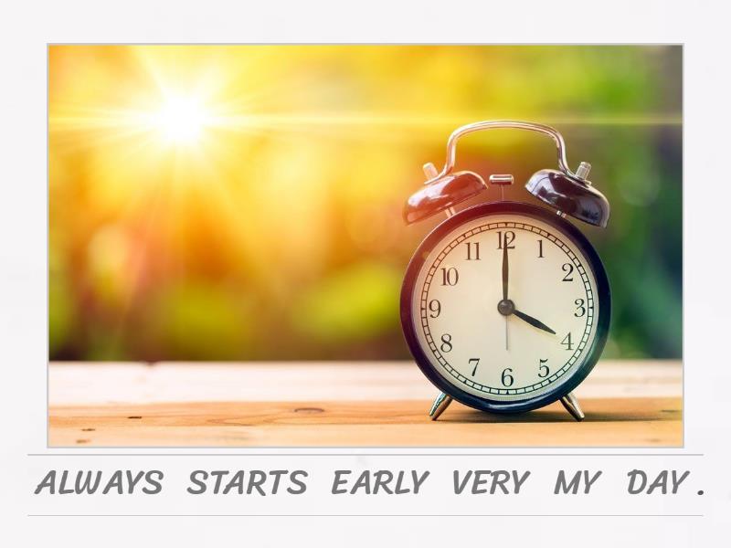 MY DAY ALWAYS STARTS VERY EARLY. , I USUALLY WAKE UP BY 7 A.M,, THEN, I BRUSH MY TEETH, TAKE A SHOWER, HAVE BREAKFAST AND WALK MY DOG.,