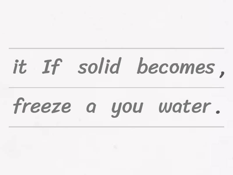 If you freeze water, it becomes a solid., Plants die if they don't get enough water., If you mix red and blue, you get purple., If I have time, I'll finish that letter., If you drop that glass, it will break., If you don't leave, I'll call the police., If I were taller, I would buy this dress., If I were 20, I would travel the world., If I were a plant, I would love the rain.,