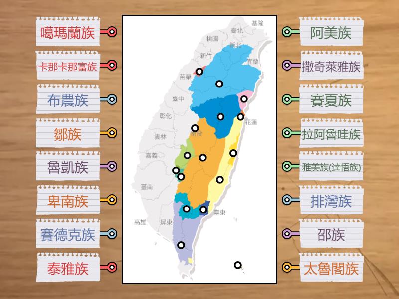 賽夏族, 泰雅族, 太魯閣族, 賽德克族, 撒奇萊雅族, 阿美族, 噶瑪蘭族, 卑南族, 排灣族, 魯凱族, 拉阿魯哇族, 卡那卡那富族, 鄒族, 布農族, 邵族, 雅美族(達悟族).