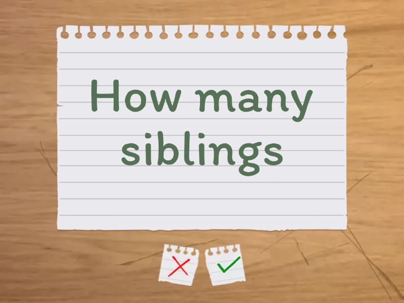 name - What´s your name?, age - How old are you?, married(Y/N) - Are you married?, children (Y/N) - Do you have children?, live - Where do you live?, work - What do you do?, free time - What do you do in your free time? , favourite food - What´s your favourite food?, spell your last name - How do you spell your last name? , like music(Y/N) - Do you like music?, like to travel(y/n) - Do you like to travel? , cook(Y/N) - Do you cook? , have pets(Y/N) - Do you have pets?, best friend - Who is your best friend?, have siblings(Y/N) - Do you have siblings?, How many siblings - How many siblings do you have?, get to work - How do you get to work?, exercise(Y/N) - Do you exercise? , "frequency" exercise - How often do you exercise? , birthday - When is your birthday?, favourite day of the week - What is your favourite day of the week?, reason the day you answerd is your favourite day of the week - Why is ... your favourite day of the week? , "distance" from your house to workplace - How far is your house from your work? , "duration" from your house to workplace - How long does it take from your hosue to your work place? ,