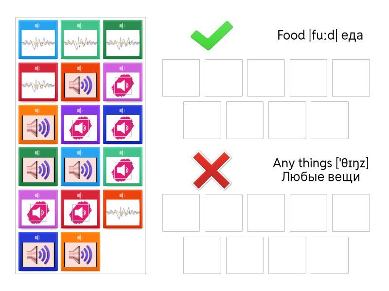 Food |fuːd| еда: , , , , , , , , , Any things [ˈθɪŋz] Любые вещи: , , , , , , , ,