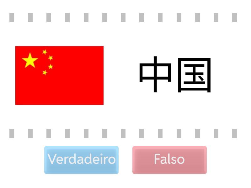 Verdadeiro: 中国, 日本, 韩国, 美国, 巴西, 英国, 澳大利亚, 葡萄牙, 西班牙文, 德文, 法文, 英文, 中文, Falso: 法国, 加拿大, 德国, 西班牙, 日文, 葡文,
