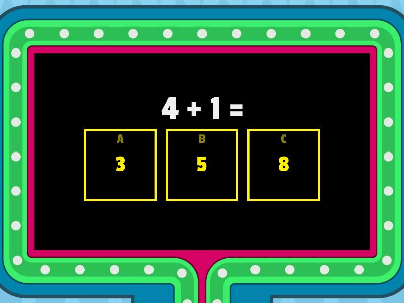 1) 5 + 3 = a) 7 b) 8 c) 6 2) 6 + 0 = a) 6 b) 9 c) 10 3) 3 + 1 = a) 3 b) 7 c) 4 4) 8 + 1 = a) 4 b) 9 c) 5 5) 7 + 2 =  a) 9 b) 4 c) 2 6) 5 + 5 = a) 7 b) 5 c) 10 7) 2 + 3 = a) 5 b) 6 c) 2 8) 4 + 4 = a) 8 b) 10 c) 7 9) 6 + 3 = a) 6 b) 4 c) 9 10) 0 + 10 = a) 6 b) 10 c) 14 11) 4 + 2 = a) 6 b) 4 c) 2 12) 5 + 2 = a) 6 b) 3 c) 7 13) 4 + 1 = a) 3 b) 5 c) 8 14) 4 + 5 = a) 9 b) 3 c) 1 15) 2 + 0 = a) 0 b) 4 c) 2 16) 3+ 3 = a) 5 b) 3 c) 6
