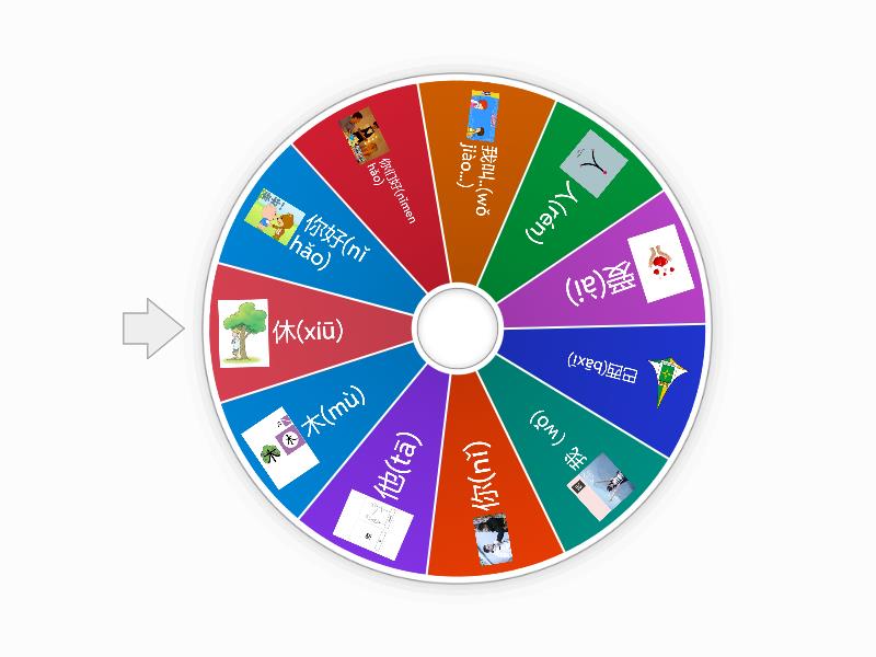 你好(nǐ hǎo), 你们好(nǐmen hǎo), 我叫..(wǒ jiào...), 人(rén), 爱(ài), 巴西(bāxī), 我(wǒ), 你(nǐ), 他(tā), 木(mù), 休(xiū).