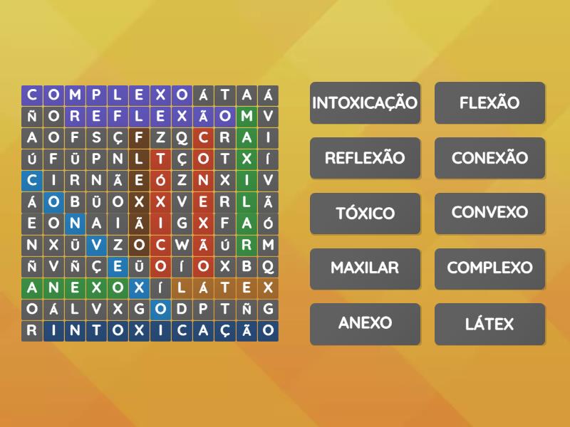 ANEXO - ANEXO,  COMPLEXO - COMPLEXO,  CONEXÃO - CONEXÃO,  CONVEXO - CONVEXO,  FLEXÃO - FLEXÃO,  INTOXICAÇÃO - INTOXICAÇÃO,  LÁTEX - LÁTEX,  MAXILAR - MAXILAR,  REFLEXÃO - REFLEXÃO,  TÓXICO - TÓXICO,