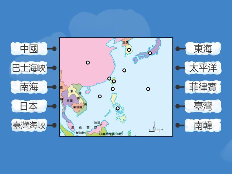 臺灣, 日本, 菲律賓, 中國, 東海, 南韓, 太平洋, 臺灣海峽, 巴士海峽, 南海.