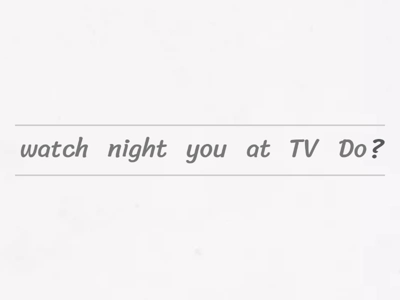 Do you watch TV at night?, Does He sleep late?, Do you wake up early?, Do we study English in the afternoon?, Do you have classes on Wednesdays?, Does Carla work on the weekend?, Do you have dinner at home?, Does your wife like to study?,