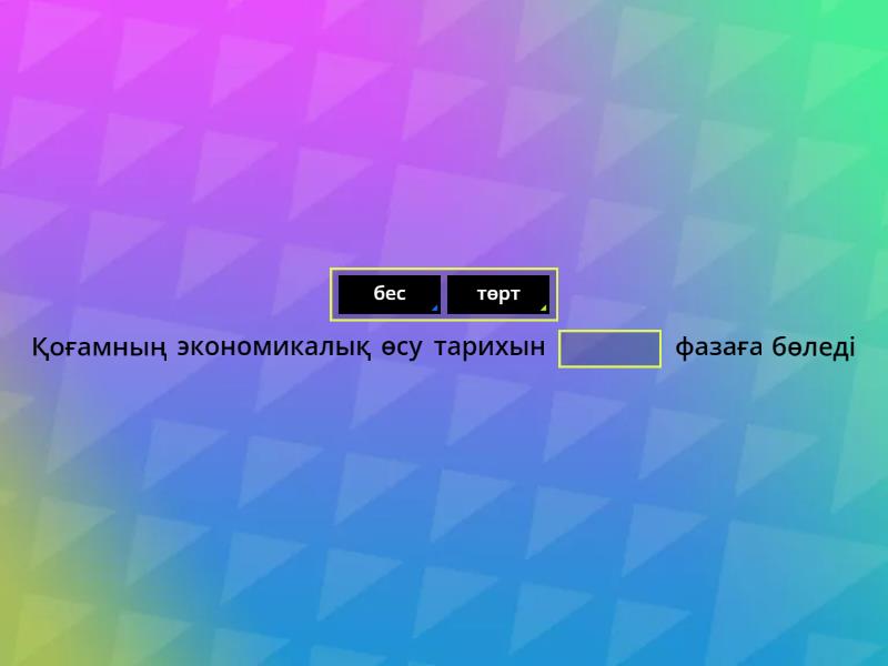 Хоррод үлгісінде ____ ұстанымы ескеріледі Қоғамның экономикалық өсу тарихын ____ фазаға бөледі Алтыншы кезеңін- қоғамның сапалы өмір сүруі үшін жаңа жолдарды ____ кезеңі деп атайды. Макроэкономикада бағалы қағаздар нарығы ____ бөлінеді Тәжірибеде нақты өсу қарқыны мен кепілдендірілген өсу қарқыны арасында алшақтық бар, сондықтан Харрод капиталдың « ____ » өсу қарқыны деген түсінікті де қолданды. Домар мен Харрод үлгілері ортақ күйінде « ____ » үлгісі деген атауға ие болған. ____ жылдары экономикалық өсудің неоклассикалық үлгілері кеңінен қолданыла бастады ____ кезеңі – мұнда экономикалық дамудың қарқыны өседі, өндіріс көлемінің өсуі халық санының өсуінен артады, адамдардың тұрмыс жағдайы өсе түседі, нәтижесінде халық шаруашылығының барлық салаларында жылдам әрі тұрақты даму үдерістеріне қол жеткізіледі Американ ғалымы және социологы ____ , өткен ғасырдың 60-шы жылдары жасаған «экономикалық өсудің стадиялары» атты концепцияның авторы Егер мемлекет ұлттық табысты ұлғайтуды табыс етсе, онда ол ақша ұсынысын ____ мүмкін. Мемлекеттік шығындардың көбеюі салдарынан пайыз мөлшерлемесі ____ , оның инвестицияға әсер етуі «инвестицияны ығыстыру әсері» деп аталады. Ұзақ мерзімді кезеңде баға деңгейі өзгермелі, (ақша ұсынысы) ____ ал үлгідегі басқа да айнымалылар нақты шама болып табылады. LM қисығы ____ нарығының тепе – теңдігін сипаттайды Үлгінің сыртқы айнымалылары – G (), (ақша ұсынысы), t (салық мөлшерлемесі).____ Мемлекеттік шығындардың көбеюі салдарынан пайыз мөлшерлемесі өсіп, оның инвестицияға әсер етуі «инвестицияны ____ әсері» деп аталады.