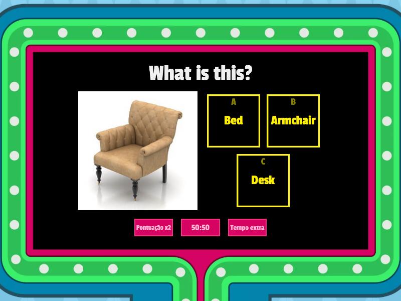 1) What is this? a) Bed b) Armchair c) Desk 2) What is this? a) Chair b) Mirror c) Bookcase 3) What is this? a) Wardrobe b) Desk c) Armchair 4) What is this? a) Bed b) Mirror c) Mat 5) What is this? a) Mat b) Bed c) Wardrobe 6) What is this? a) Bookcase b) Mirror c) TV