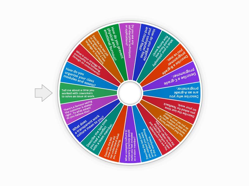 1) How do you organize your class modules and assets? 2) What is your strategy for punctuality and following through on commitments? 3) Describe the last job or project where you were faced with a new language or framework. 4) How do you prevent physical and emotional burnout? 5) Do you use any self-discipline techniques or applications? 6) How do you organize your computer files and cloud files? 7) What is your philosophy around focus and flow during work? 8) Describe a B-grade programmer you’ve met. 9) Describe a C-grade programmer. 10) Describe why you are an A-grade programmer. 11) Describe the last time you asked for feedback on your work. 12) You find yourself facing a technical problem you’re not able to solve. What do you tell your client? 13) You are not comfortable with a software project and need to resign. Describe the steps you would take. 14) Describe the last time you realized you were wrong about something in the workplace. 15) What company culture or company practices would make you feel included as a team member? 16) Describe the last time someone did not understand what you were saying. 17) Describe the last time you had a conflict with a team member. 18) What does a transparent work culture mean to you? 19) There’s a famous saying ‘the customer is always right’. To what extent do you believe this? 20) Tell me about a time you worked with coworkers to solve an issue at work.