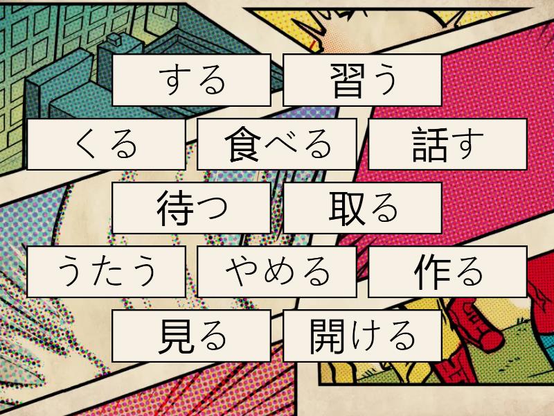 食べる - 食べさせられる, 見る - 見させられる, 開ける - 開けさせられる, くる - こさせられる, する - させられる, 取る - 取らされる, やめる - やめさせられる, 作る - 作らさせる, 待つ - 待たされる, うたう - うたわされる, 習う - 習わされる, 話す - 話させられる,
