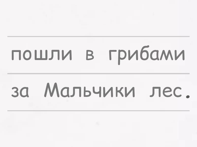 Мальчики пошли в лес за грибами., В лесу они встретили ежа., Ёжик быстро убежал за кустик.,