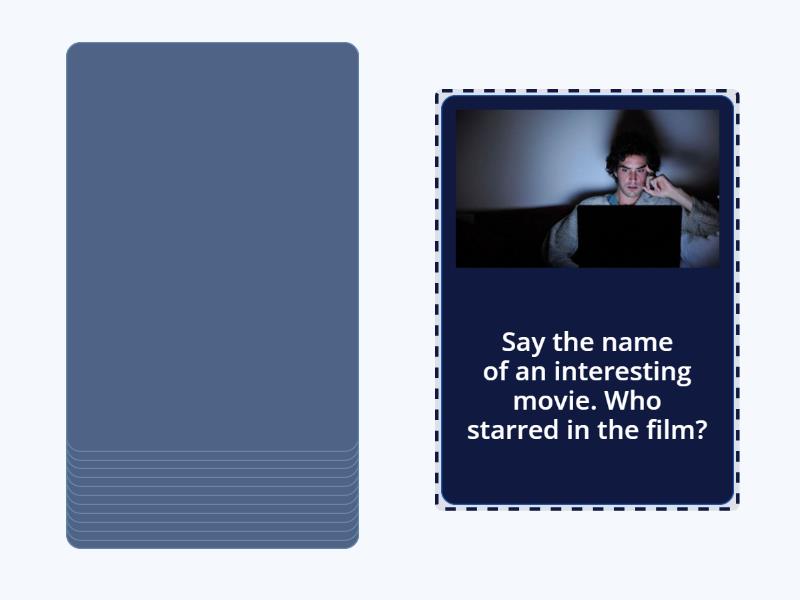 Say the name of an amazing game. Explain how you play it., Are you interested in books? which ones? Tell me about the best book you read., Say the name of an interesting movie. Who starred in the film?, Talk about an exciting trip in your life., When was the last time you were very excited?, What's something boring you have to do? , What makes you bored? Why?, Talk about a disappointing TV series., When was the last time you were disappointed?, Talk about an embarrassing moment in your life., When was the last time you were very sad? What happened?, When was the last time you were surprised?, Talk about a movie with a surprising ending..