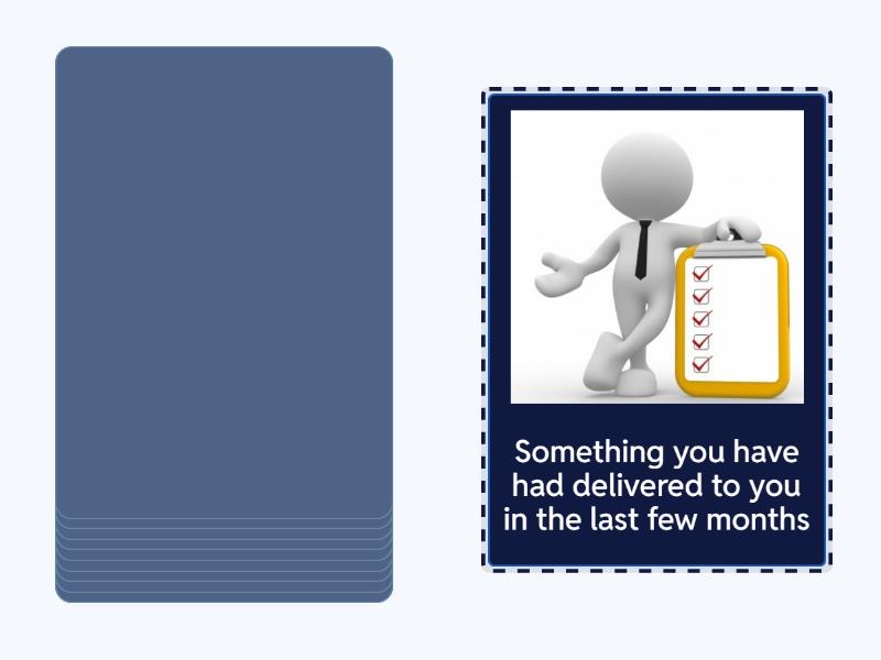 A time when you had your hair cut really badly, Last time you had something cooked for you, Something you had stolen from you in the past, Something you have had decorated recently, Something you have had delivered to you in the last few months, Something you want to get done by the end of the year, Something you need to have repaired, Something you need to get cleaned or washed, Something you will get done by the end of the week, A household job that you regularly have done by someone else..