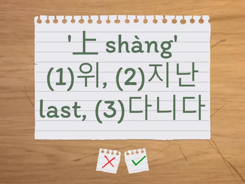 '有 yǒu'는 '있다'라는 뜻, 부정형은 '没有 méiyǒu'이다. - 잘하고 있어... 힘을 내..., '个 gè'는 '개, 명'이라는 뜻의 가장 일반적인 _ _로, 사람이나 물건을 세는 단위이다. - '个 gè'는 '개, 명'이라는 뜻의 "양사"로, 사람이나 물건을 세는 단위이다., 양사(단위사)의 어순: _ _+_ _+_ _ / yī ge dìdi (a cup of tea) - 양사(단위사)의 어순: "수사"+"양사"+"명사" / yī ge dìdi (a cup of tea), ('多 duō 많다' + '大 dà 크다') = - 나이를 먹다, (多+형용사 → 多=의문사) = - 얼마나 (형)한지, '了 le'는 '~되다'라는 뜻의 _ _ _ _, 문장 _에 씀, _ _ _ _과 _ _ _ _를 나타냄 - '了 le'는 '~되다'라는 뜻의 "어기조사", 문장 "끝"에 씀, "상황 발생"과 "상태 변화"를 나타냄, '岁 suì'는 '살, 세'라는 뜻의 나이를 나타내는 _ _ - '岁 suì'는 '살, 세'라는 뜻의 나이를 나타내는 "양사", 나이 묻기: 상대방의 _ _에 따라 표현이 달라짐 / [어림: 你几岁了? Nǐ jǐ suì le?] / [또래: 你多大了? Nǐ duō dà le?] / [연상: 你多大年级了? Nǐ duō dà niánjí le?] - 나이 묻기: 상대방의 "연령"에 따라 표현이 달라짐 / [어림: 你几岁了? Nǐ jǐ suì le?] / [또래: 你多大了? Nǐ duō dà le?] / [연상: 你多大年级了? Nǐ duō dà niánjí le?], '这 zhè'는 '이(것)'이라는 뜻 (this) - '那 nà'는 '저(것)'이라는 뜻, (that), '上 shàng' (1)위, (2)지난 last, (3)다니다 - (3)다니다: 她上几年级? Tā shàng jǐ niánjí, 小学 xiǎoxué 초등학교 (小一 초1) / 初中 chūzhōng 중학교 (初一 중1) / 高中 gāozhōng 고등학교 (高一 고1) / 中学 zhōngxué 중·고등학교 / \大学 dàxué 대학교 (大一 대1) - 화이팅!, '几月几号 jǐ yuè jǐ hào'에서 '号 hào'는 문어체(글), 대신에 '日 rì'로 쓰면 구어체(회화체) - '几 jǐ'와 '天 tiān' 비슷함: (一天 하루, 两天 이틀), '几 jǐ'는 '몇'이라는 뜻의 10 이하의 수를 묻는 "의문사", 그러나 날짜를 묻는 등의 "시간사"로 쓰일 경우 10 이상도 상관 없음 - 문장에서 '是 shì'를 생략 가능 [明天(是)几月几号? míngtiān (shì) jǐ yuè jǐ hào?]-명사 술어문(주로 시간 표현): 형용사나 동사 없이 명사가 서술어 역할을 함, '吧 ba'는 어기조사이다. (1)추측: '~이지 않아?', '~이지?' (뉘앙스를 풍김. 진짜 ?가 아님) / (2)청유, 제안: '~하자' - 힘내라..., '的 de'는 '~의'라는 뜻, "뒤"에 있는 "명사"를 수식할 때 사용, (가까운 사이에는 생략) - '的 de'는 (1)'~의' / (2)'~한 것', '~인 것' (형‧동 + de =>명사화), '祝 zhù'는 '빌다, 기원하다'라는 뜻, [어순: 祝 + 대상 + 내용 (祝你平安 zhù nǐ píng’ān)] - 격음부호(’): 한 단어에서 뒤의 음절이 'a, o, e'로 시작할때 음절을 구분하기 위해 사용, '今天星期几 Jīntiān xīngqī jǐ?' 에서 (星期 xīngqī)= (周 zhōu)로 바꿔 쓸 수 있음 - '今天星期几 Jīntiān xīngqī jǐ?' = '今天周几 Jīntiān zhōu jǐ?', '两 liǎng'은 '둘, 2'라는 뜻, 양사와 함께 쓰여 "수량"을 나타냄 - (X)二天 / (O)两天,