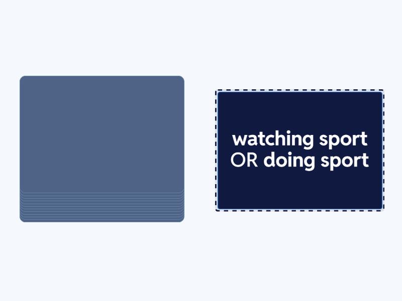 swimming in the sea OR in the pool, watching a film in your language OR in another language, communicating by email OR whatsapp, doing English homework OR housework, eating in a restaurant OR at home, Going on holiday in your country OR abroad, going clothes shopping alone OR with another person, working during the day OR at night, a holiday with your family OR with friends, watching a film at the cinema OR at home, watching sport OR doing sport, buying things in a shop OR online, listening to music with headphone OR without headphones.