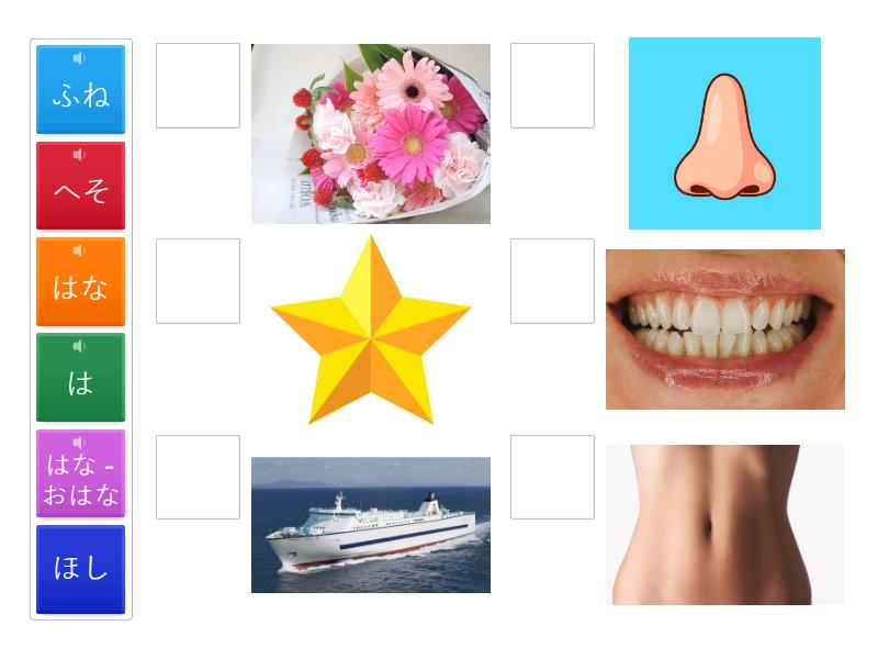 は, はこ, はし, はな - おはな , はな  , ひこうき, ひ  , ひ  - たいよう, ふね, ほし, へそ,