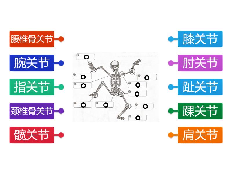 膝关节, 髋关节, 肩关节, 踝关节, 肘关节, 腕关节, 指关节, 腰椎骨关节, 颈椎骨关节, 趾关节.