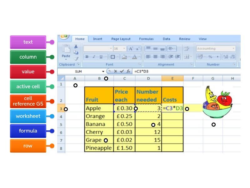 worksheet, value, row, column, text, formula, active cell, cell reference G5.