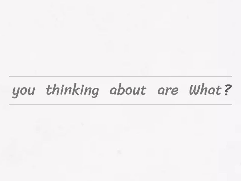What are you thinking about?, Who did she dance with?, Who are you looking for?, Where did they walk to?, What were you talking about?, What is he worried about?, Who were you talking to?, What is she worried about?, What are they waiting for?, What are you interested in?,
