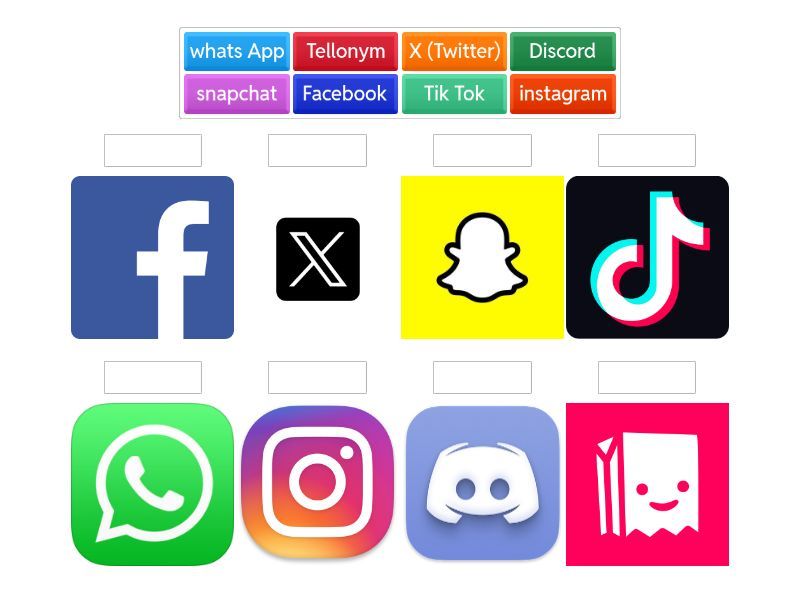 instagram, snapchat, Tik Tok, Discord, Tellonym, whats App, Facebook, X (Twitter),