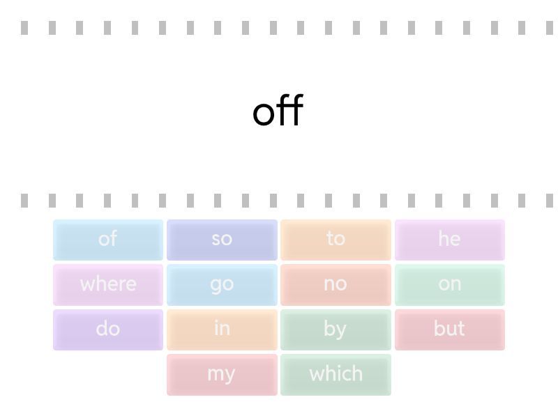 of - off, but - butt, in - inn, by - buy, he - hee, so - sew, on - one, no - know, do - does, go - goes, my - mine, to - two, which - witch, where - wear,
