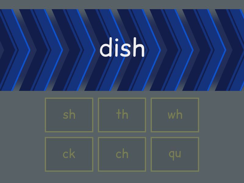 sh - dish, ch - chip, ck - duck, wh - whip, th - math, qu - queen,