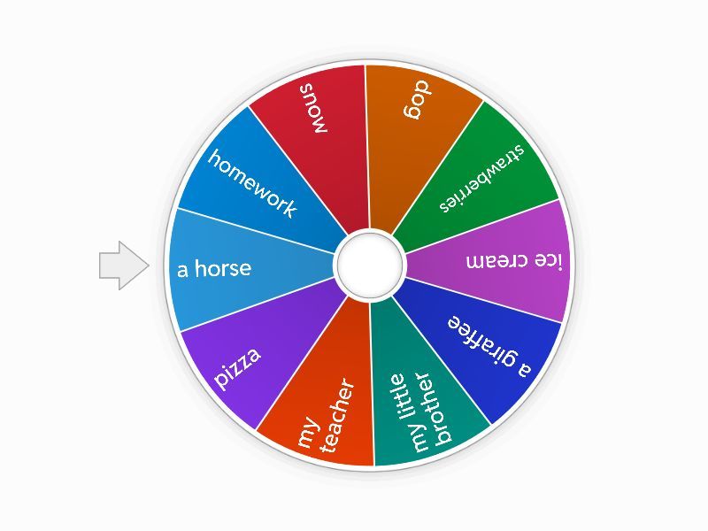 1) homework 2) snow 3) dog 4) strawberries 5) ice cream 6) a giraffee 7) my little brother 8) my teacher 9) pizza 10) a horse