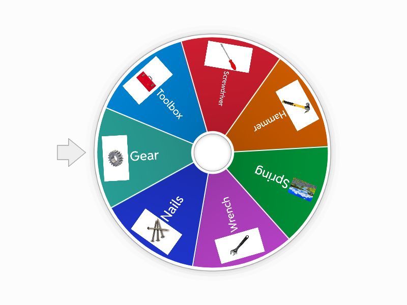 1) Toolbox 2) Screwdriver 3) Hammer 4) Spring 5) Wrench 6) Nails 7) Gear