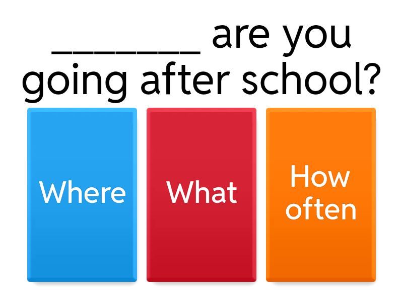 1) _______ are you going after school? a) Where b) What c) How often 2) _______ are they doing right now? a) What b) Where c) How often 3) _______ do you visit your grandparents? a) What b) Where c) How often 4) _______ is your dad going this morning? a) What b) Where c) How often 5) _______ are you eating for lunch? a) What b) Where c) How often 6)  _______ does your mom go jogging? a) What b) Where c) How often 7) _______ is she doing after dinner? a) What b) Where c) How often 8) _______ are we going this weekend? a) What b) Where c) How often 9) _______ do you play basketball? a) What b) Where c) How often 10) _______ is your brother going after class? a) What b) Where c) How often 11) _______ are you watching on TV? a) What b) Where c) How often 12) _______ do you clean your room? a) What b) Where c) How often 13) _______ is your sister doing now? a) What b) Where c) How often 14) _______ are they going on Sunday? a) What b) Where c) How often 15) _______ do you go to the dentist? a) What b) Where c) How often 16) _______ are you doing after breakfast? a) What b) Where c) How often 17) _______ does your family go on vacation? a) What b) Where c) How often 18) _______ are you meeting your friends? a) What b) Where c) How often 19) _______ is he doing after lunch? a) What b) Where c) How often 20) _______ are we going this summer? a) What b) Where c) How often