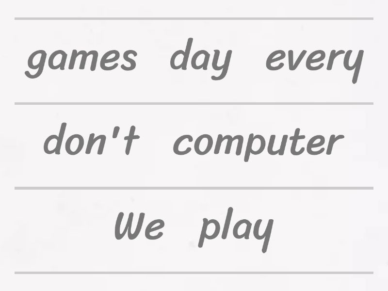 He always has toasts for breakfast, She is walking the dog now, We don't play computer games every day, I am wearing different socks now, They aren't learning about countries now, He doesn't sweep the floor every day , She sometimes reads a comic, We hardly ever play chess, She is dusting now, He isn't feeding the cat now,
