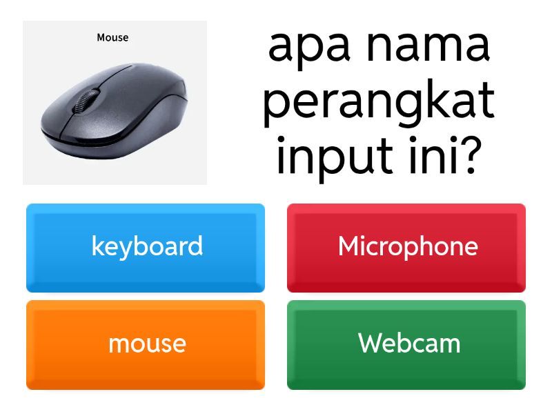1) apa nama perangkat input ini?  a) keyboard b) Microphone c) mouse d) Webcam 2) perangkat apa yang dapat mengubah sinyal digital menjadi sinyal analog atau sebaliknya? a) switch b) kabel jaringan c) modem d) CCTV 3) apa yang di maksud Webcam? a) menggerakkan kursor pada komputer b) Merekam suara atau audio c) mengontrol pergerakan kursor pada laptop d) Berkomunikasi tatap muka atau konferensi jarak jauh 4) Apa nama perangkat jaringan ini?  a) router b) server c) NAS d) LAN Card 5) Perangkat apa yang dapat mengubah sinyal digital menjadi sinyal analog atau sebaliknya? a) Modem b) router c) kamera d) Televisi 6) perangkat apa yang dapat mencetak dokumen dan gambar dari komputer atau perangkat lainnya?  a) laptop b) Printer c) smartphone d) Tablet 7) Apa nama perangkat ini?  a) modem b) switch c) repeater d) Kabel jaringan 8) Apa nama perangkat yang menggerakkan kursor pada komputer?  a) mouse b) keyboard c) microphone d) webcam 9) Apa nama perangkat input ini?  a) touchpad b) webcam c) microphone d) mouse 10) apa nama perangkat jaringan ini? a) server b) NAS(Network attached storage? c) Router d) LAN Card