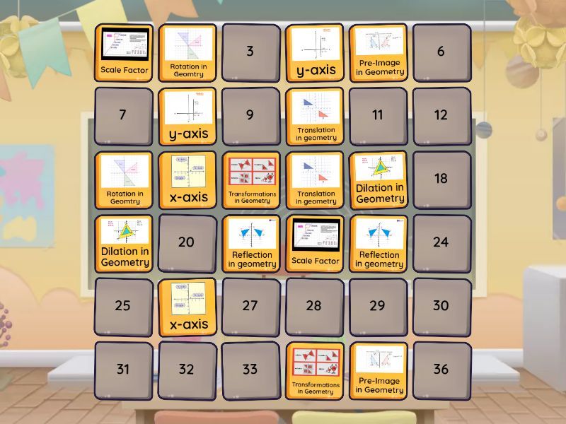 Translation in geometry, Reflection in geometry, Rotation in Geomtry, Dilation in Geometry, Transformations in Geometry, Pre-Image in Geometry, Scale Factor, x-axis, y-axis, origin on a graph, Coordinates on a graph, vertex, Dilation factor, Center of Rotation, Line of Symmetry, Point Symmetry, Rotational Symmetry, Symmetry,