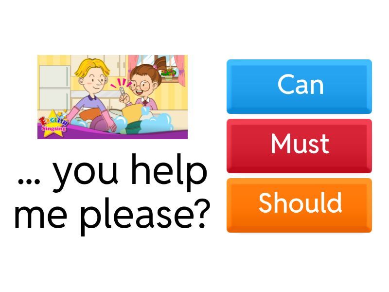 1) ... you help me please? a) Can b) Must c) Should 2) You ... do sport if you want to be fit. a) can b) must c) should 3) You ... do your homework before you play. a) can b) should 4) He broke his leg so he ... play football. a) can't b) shouldn't c) mustn't 5) Drivers ... drive fast. It's forbidden. a) can't b) shouldn't 6) I ... speak Chinese: it's too difficult! a) can't b) shouldn't 7) She ... take an umbrella: it's going to rain! a) can b) should c) must 8) We ... take photos inside: it's not forbidden. a) can b) should c) must 9) I think we ... take this road: it's not on my map! a) can't b) shouldn't c) mustn't 10) You look tired! You ... sit down and have a glass of water. a) can b) should c) must 11) We ... stop when the traffic light is red. a) can b) should c) have to 12) Tom has a headache. He ...take an aspirin. a) should b) can c) must 13) You ... buy the blue dress: it looks better on you. a) can b) should c) must 14) To be fit you... exercise every day. a) can't b) shouldn't c) mustn't