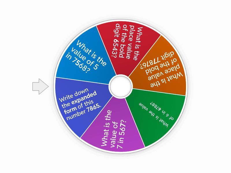 1) What is the value of 5 in 7568? a) 5000 b) 500 c) Hundreds d) Tens 2) What is the place value of the bold digit 6543? a) 6000 b) Thousands c) 600 d) Hundreds 3) What is the place value of the bold digit 77876? a) Hundreds b) Thousands 4) What is the value of 6 in 6788? a) 6000 b) Thousands 5) What is the value of 7 in 567? a) 7 b) ones 6) Write down the expanded form of this number 7865. a) 7000+800+60+5 b) 700+800+60+5