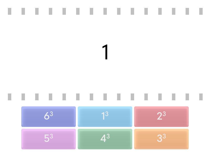 13 - 1, 23 - 8, 33 - 27, 43 - 64, 53 - 125, 63 - 216,