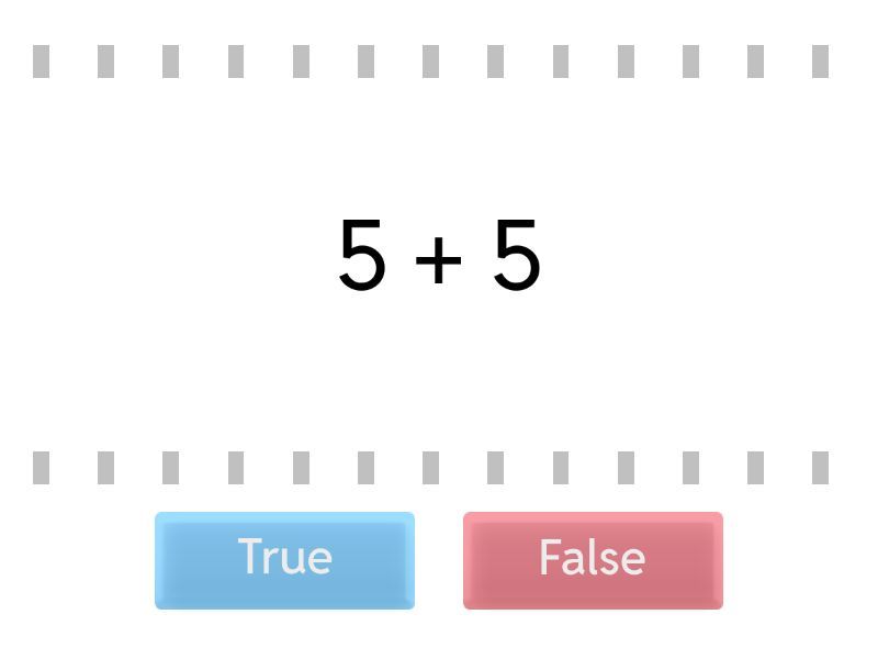 True: 5 + 5, 6 + 4, 7 + 3, 8 + 2, 9 + 1, 10 + 0 , 4 + 6, 3 + 7, 2 + 8, 1 + 9, 0 + 10 , False: 1 + 0, 2 + 0, 3 + 0, 4 + 0, 5 + 0, 6 + 0, 7 + 0 , 2 + 1,