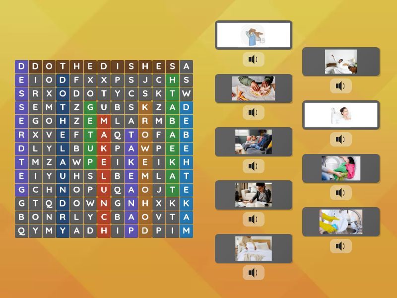 take a bath, take a nap, make lunch, make the bed, do the dishes, do the laundry, do homework, get up, get dressed,