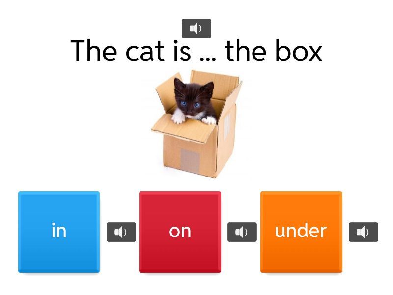 1) The cat is ... the box a) in b) on c) under 2) The dog is ... the table a) in b) on c) under 3) The cat is ... the table a) in b) on c) under 4) The cat is ... the dog a) under b) next to c) on 5) The rabbit is ... the basket a) under b) next to c) in 6) The dog is ... the sofa a) under b) next to c) on d) between 7) The rabbit ... the flower a) under b) next to c) on 8) The cat is ... the car a) under b) next to c) on d) between 9) the cat is ....... the boxes . a) under b) between c) on