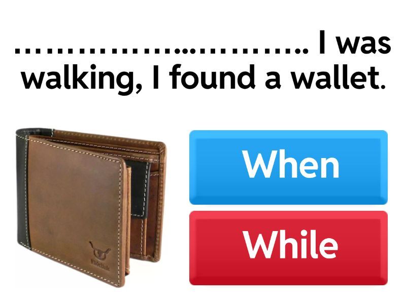 1) ……………...……….. I was walking, I found a wallet. a) When b) While 2) They were eating, ……………...…………. the accident happened. a) when b) while 3) ………………………… the door bell rang, I was doing my homework. a) When b) while 4) The light went off, ……………………. Sara was watching T.V. a) when b) while 5) ……………………..….. he was doing shopping, he lost his credit. a) When b) While 6) ............ we were sitting in the yard we heard a strange noise. a) While b) When 7) I was walking in the beach.................... it started to rain. a) When b) While 8) ............. George was driving, he was listening to music. a) While b) When 9) I was with a friend.............. it started to snow. a) When b) While 10) ........ you were playing tennis, rob called you. a) While b) When