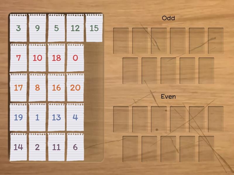 Odd: 1, 3, 5, 7, 9, 11, 13, 15, 17, 19, Even: 0, 2, 4, 6, 8, 10, 12, 14, 16, 18, 20,