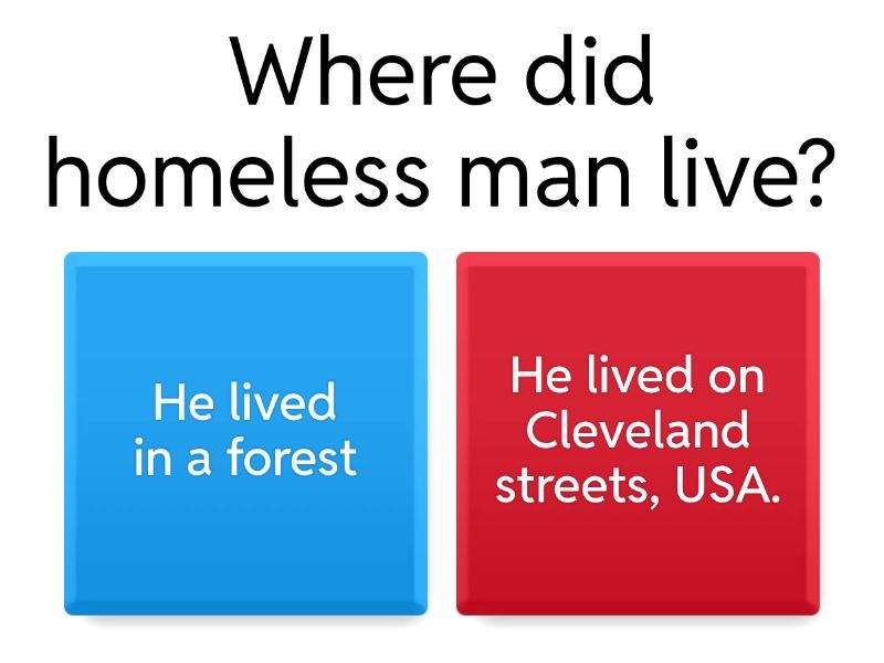 1) Where did homeless man live? a) He lived in a forest b) He lived on Cleveland streets, USA.  2) Which broadcastings have offered Ted Williams a job? a) ESPN, CNN AND MTV b) Telemundo, news channel c) Youtube d) Tiktok 3) What did reporters discover when they investigated Ted Williams´ life ? a) He had a mental illness b) He suffered from lung cancer c) He was maltreatment by his parents d) He had struggled with drugs and alcochol adiction. 4) What was the clip that made Ted Williams famous? a) It was a funny clip b) He made famous after his clip of mellifluous radio voice. c) He made famous because he posted a viral video on Tiktok. d) He made famous after he appeared on TV. 5) What does the expression "overnight sensation" mean ? a) That from one moment to the next he became famous for his viral clip b) It is an expression that means he is happy. c) It is an expression that means he is surprised. d) None above