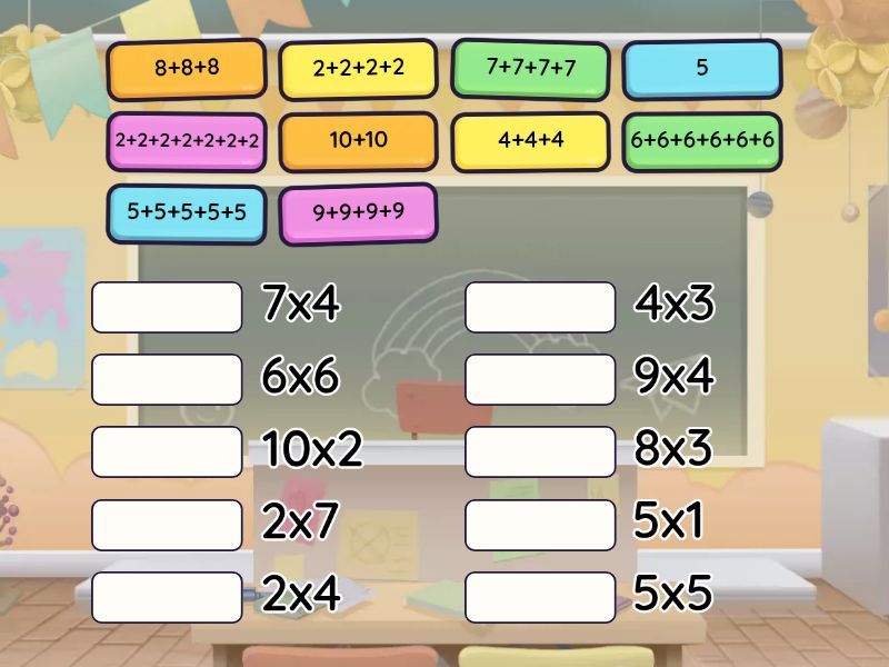 5+5+5+5+5 - 5x5, 2+2+2+2+2+2+2 - 2x7, 4+4+4 - 4x3, 10+10 - 10x2, 7+7+7+7 - 7x4, 8+8+8 - 8x3, 6+6+6+6+6+6 - 6x6, 5 - 5x1, 2+2+2+2 - 2x4, 9+9+9+9 - 9x4,