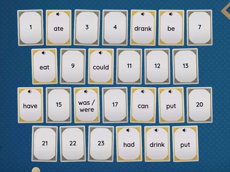 drink - drank, can - could, eat - ate, put - put, be - was / were, have - had, come - came, take - took, give - gave, go - went, get up - got up, see - saw, say - said,